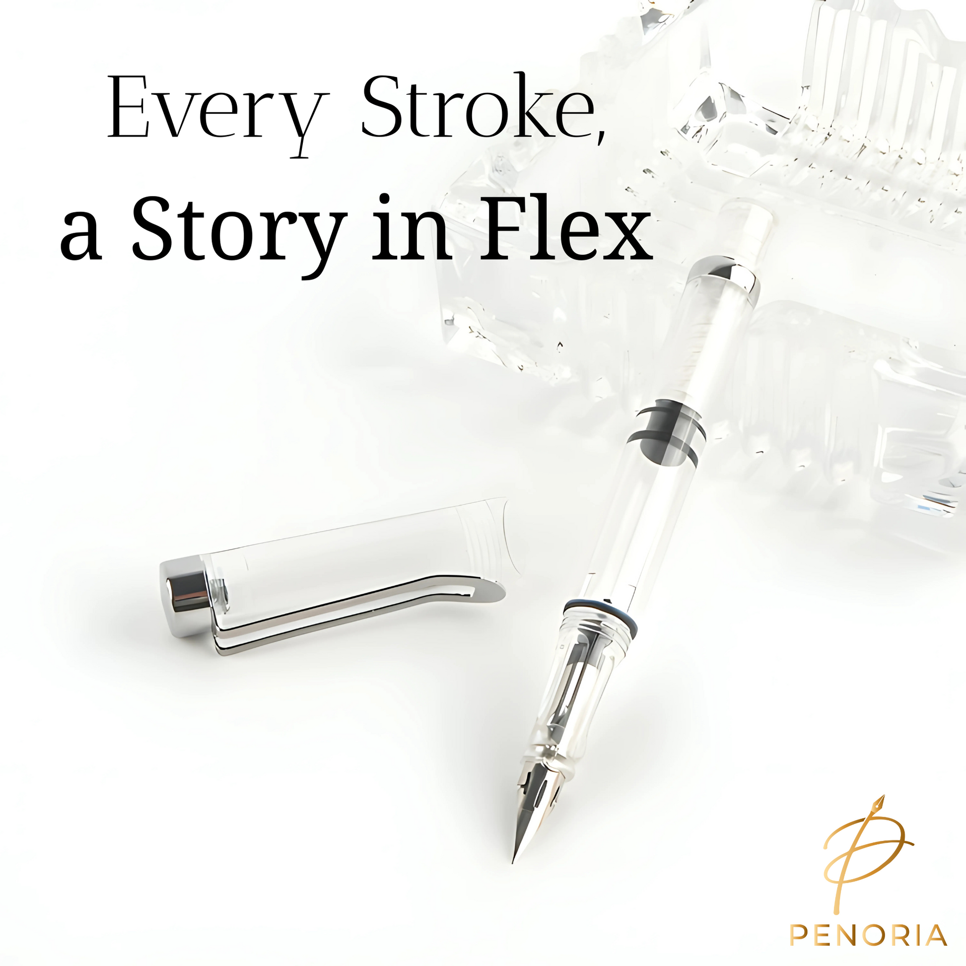 Glasswell’s hand-tuned flex nib vaults from hairline to bold with the lightest press, translating every nuance of your grip into expressive strokes.