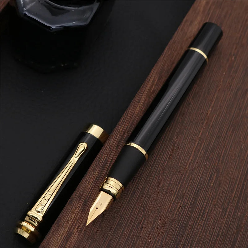 Fountain pens use liquid ink and a nib, offering smoother writing and a more elegant feel compared to ballpoint or gel pens.