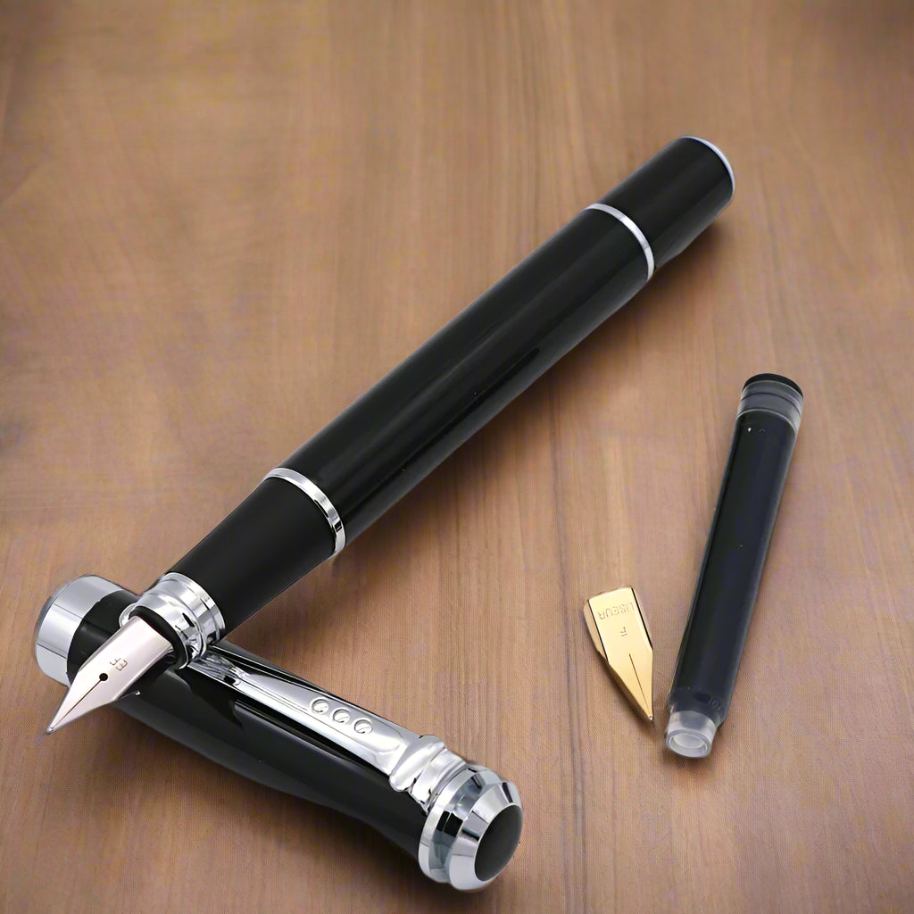 This fountain pen features a 0.5 mm nib for clean, precise lines, and comes equipped with a free ink converter, ready to pair with your favorite bottled ink.
